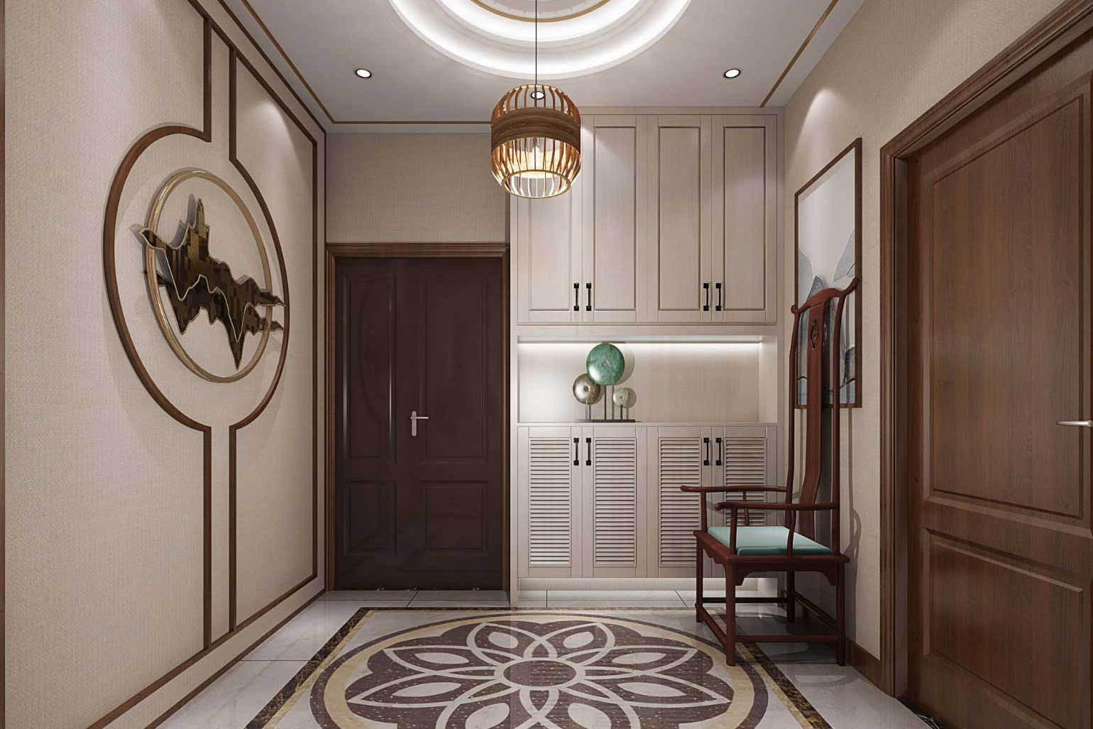 瀏覽量:532該案例屬于新中式風(fēng)格。該案例沿用的傳統(tǒng)的中式風(fēng)格的布局理念,需要保持最大限度的利用好整體空間的采光、通風(fēng),其次的空間布局應(yīng)該以房屋主人的生活習(xí)慣和個(gè)性需求來(lái)進(jìn)行設(shè)計(jì)。對(duì)于整體空間的設(shè)計(jì)還需要與房間中的家具布置進(jìn)行搭配,合理的運(yùn)用室內(nèi)的家具以及裝飾性的工藝品可以得到一個(gè)更為合理的空間布局。