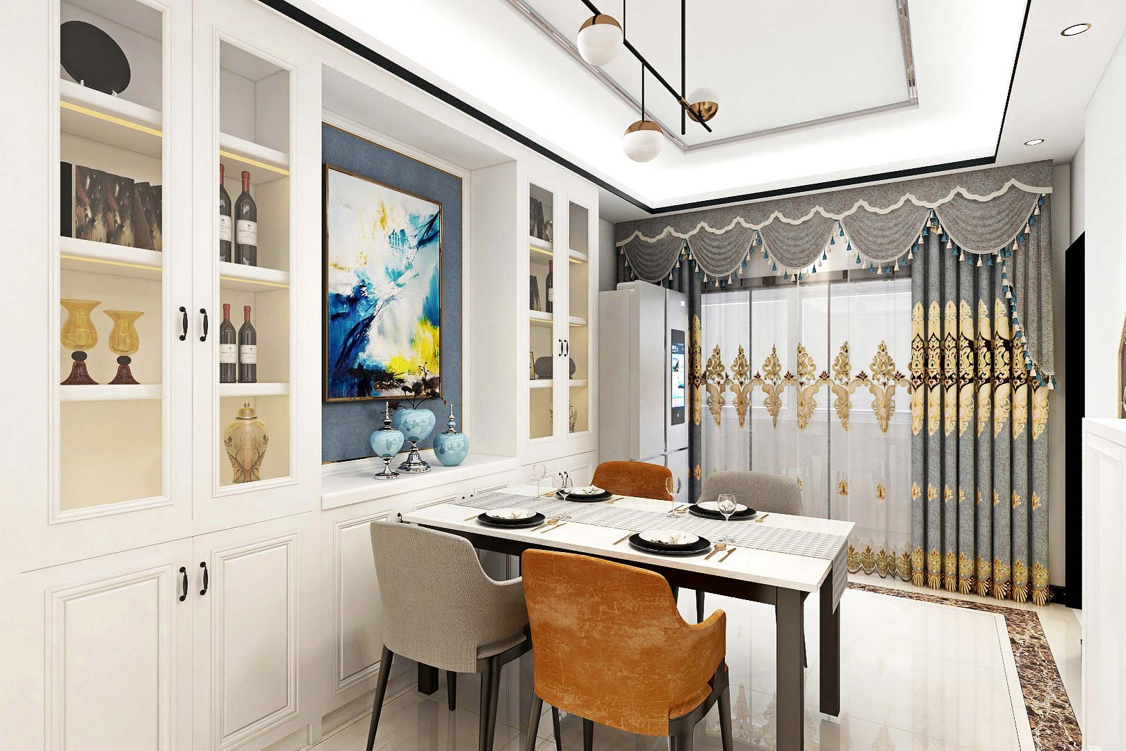 瀏覽量:365此案例戶型為4房2廳2衛(wèi),總面積120㎡,屬于現(xiàn)代輕奢風(fēng)格,整體以灰白色調(diào)為主,以明艷色彩點(diǎn)綴為輔,打造了一個(gè)簡(jiǎn)約大氣的舒適居住空間。此外,空間以金屬元素作為點(diǎn)綴,用色彩的純度傳遞細(xì)膩的質(zhì)感。造型簡(jiǎn)潔,線條流暢的家具組合搭配,營(yíng)造出穩(wěn)定、協(xié)調(diào)、溫馨的空間感受,滿足現(xiàn)代家庭的輕奢需求。設(shè)計(jì)師用一些精致裝飾的小物品來彰顯主人自在有格調(diào)生活方式,凸顯其潮流精神與靈魂修養(yǎng)。