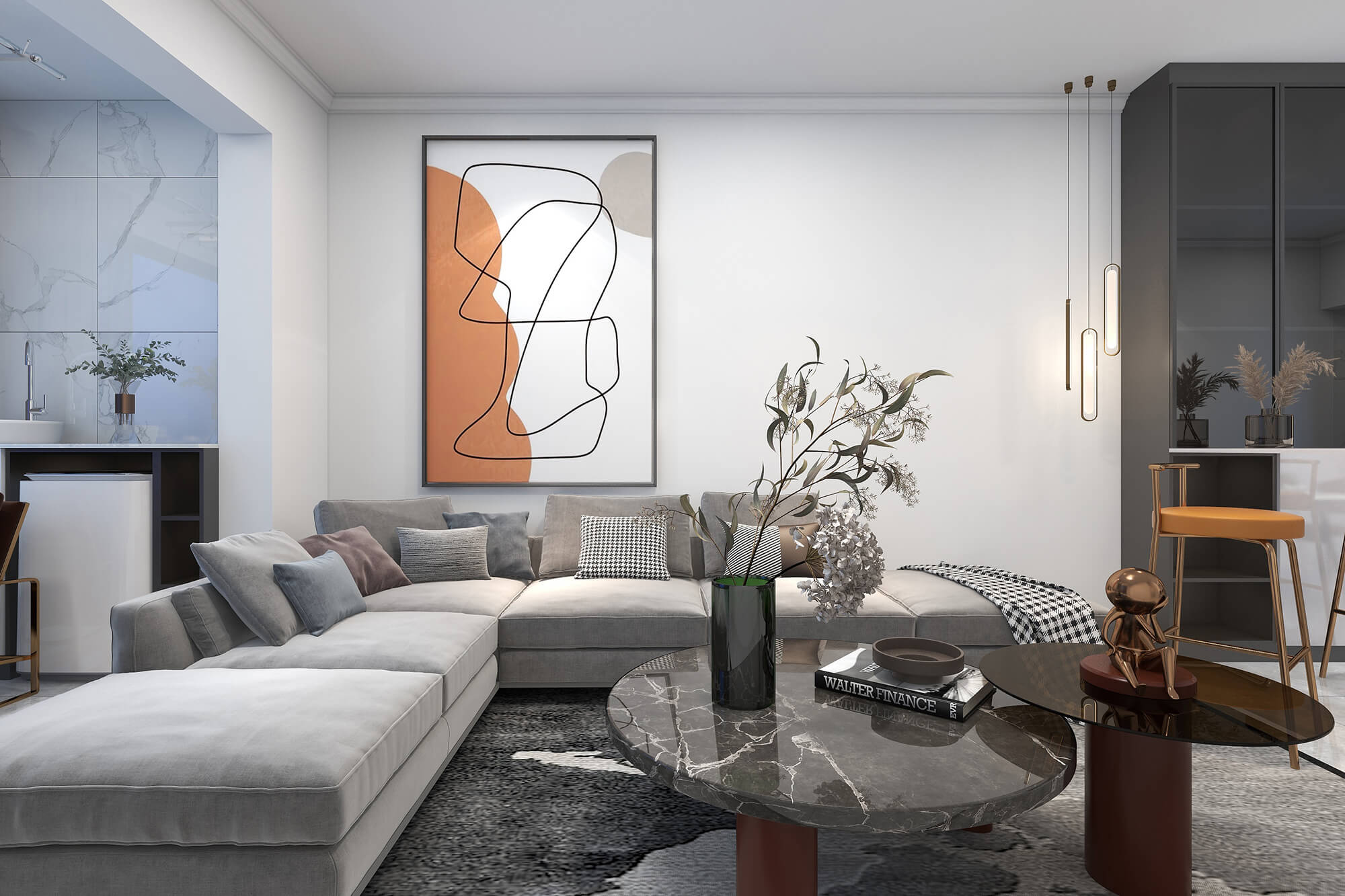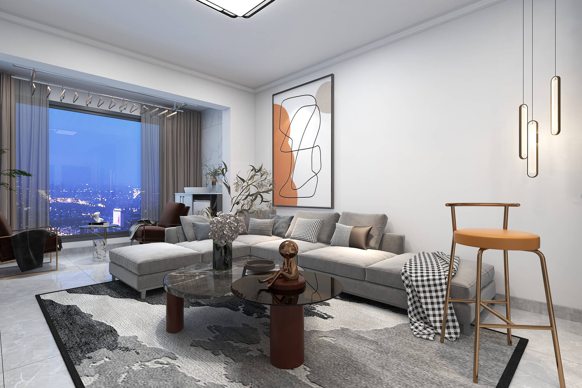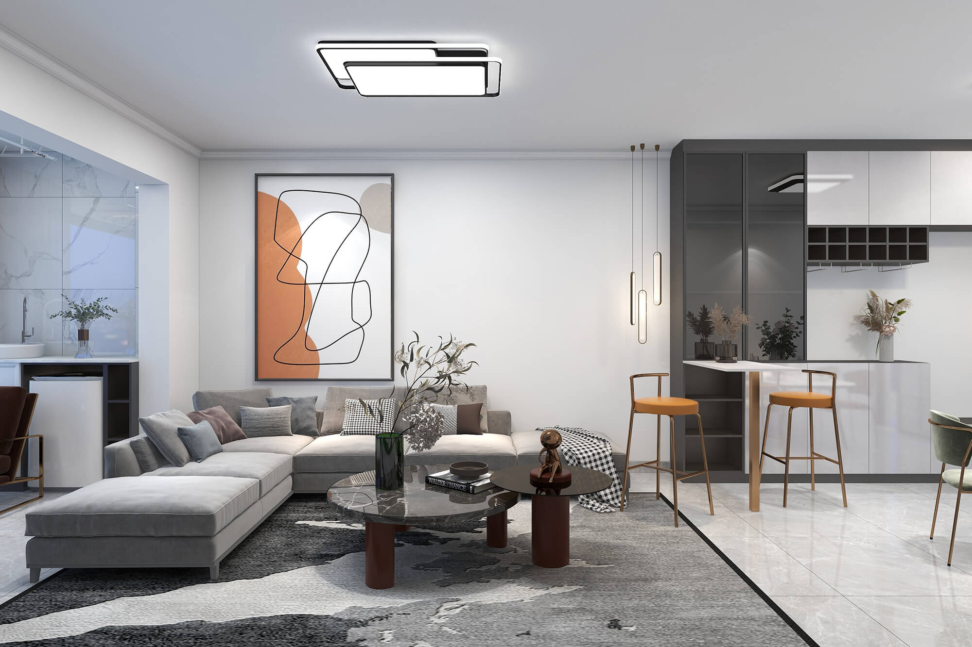 本案總面積109㎡,以現(xiàn)代簡(jiǎn)約為基底,舒適自然為核心,融合別出心裁的考量,打造精睿格調(diào)、人文藝術(shù)的品質(zhì)居所。為此設(shè)計(jì)師在用色選材上大花心思,以溫馨典雅的淺色色、知性優(yōu)雅的咖啡色,璀璨溫暖的橘棕色形成這座大宅獨(dú)特的氣質(zhì)色彩,讓人感受到生活的愜意與放松。
