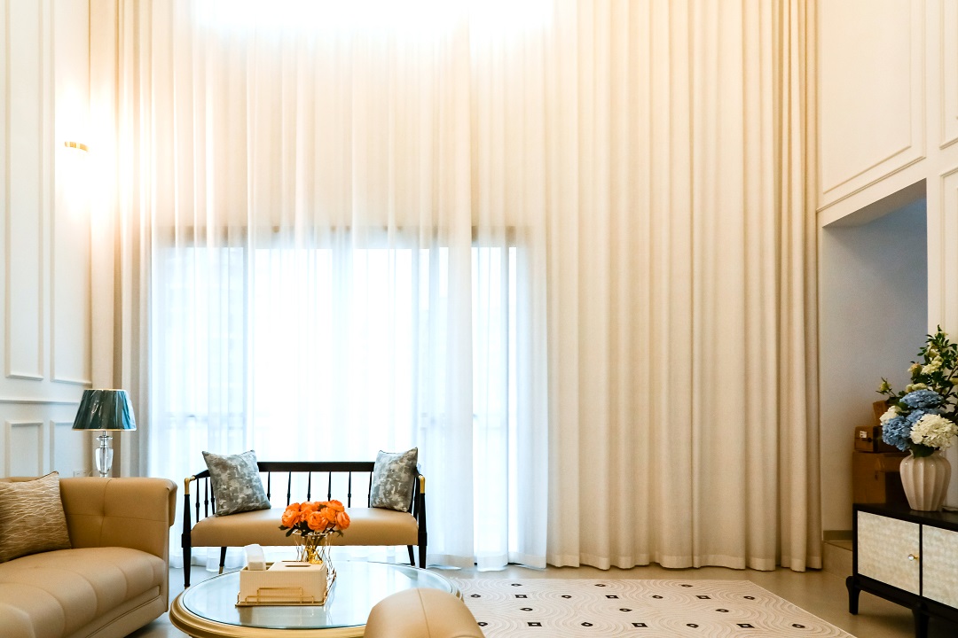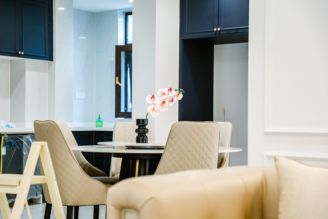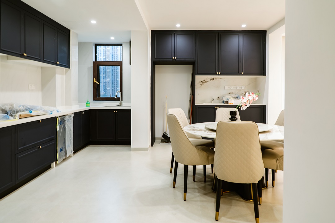 乳白色布藝沙發(fā)與黑色復(fù)古腳凳沙發(fā)的搭配,用智能窗簾隨時(shí)打開好心情,從客廳往廚房看去,用復(fù)古法式弧形帶出了精致有趣的視角