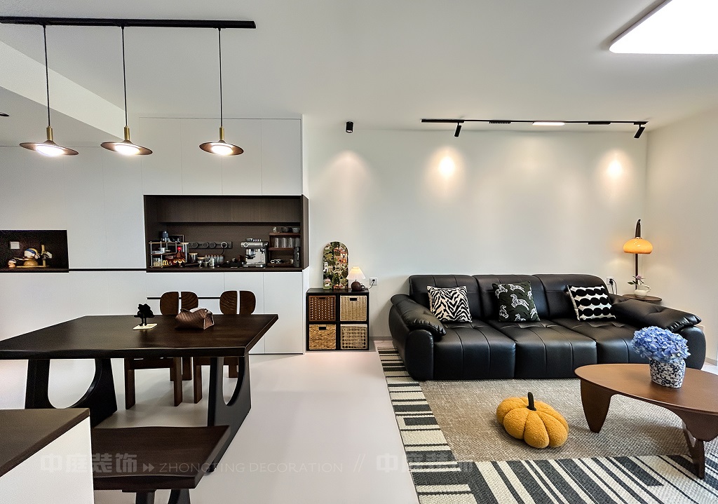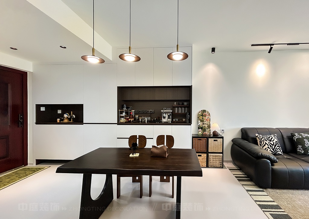 這套房從普通居所蛻變?yōu)槎际携熡鷪?,客餐廳以黑白棕營造高級松弛感,咖啡角、藝術畫、游戲區(qū)藏著主人對生活的熱愛,餐廚煙火與雅致共生,每處角落的陳設都是靈魂的妥帖安放,是裝滿故事與溫度的私屬堡壘。
