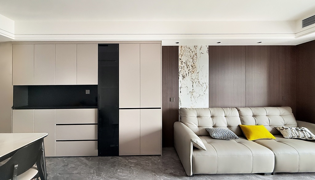 瀏覽量:118整體是簡(jiǎn)約高級(jí)的風(fēng)格,米棕色調(diào)溫柔又大氣,朋友來(lái)都夸很有質(zhì)感!皮質(zhì)沙發(fā)癱著超舒服,亮黃色抱枕一下子讓空間活潑起來(lái)~ 收納做得很隱蔽,家里永遠(yuǎn)整整齊齊。臥室的窗簾一拉,就是專(zhuān)屬的靜謐小天地。在這樣的家里,吃飯、追劇、發(fā)呆,每一刻都好愜意~這大概就是把日子過(guò)成詩(shī)的感覺(jué)吧~