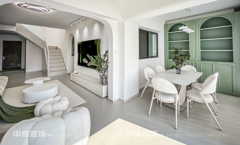 瀏覽量:210這一套綠意盎然的奶油風(fēng)格好似把森林搬進(jìn)了家,軟乎乎的奶白沙發(fā)搭配苔蘚綠毛毯,抱枕選了粉綠撞色,往上面一躺,一天的疲憊都被融化了!圓潤的白色組合茶幾,顏值與實(shí)用并存,氛圍感直接拉滿。墻面掛畫大葉綠植藝術(shù)畫,角落擺放鮮活綠植,將自然綠意融入空間。