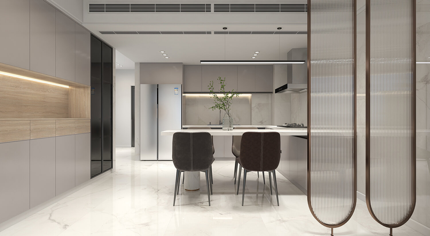 本案例戶型為:3房1廳2衛(wèi),總面積149㎡?,F(xiàn)代簡約風(fēng)格以極簡的線條、簡潔的色彩和純粹的形式為主要特征的室內(nèi)設(shè)計風(fēng)格。在這個案例的設(shè)計中,避免過多的裝飾和復(fù)雜的紋理,力求簡單、清爽和現(xiàn)代感。