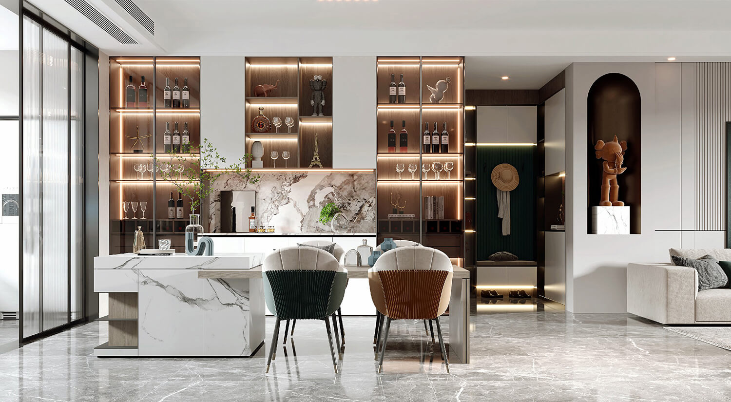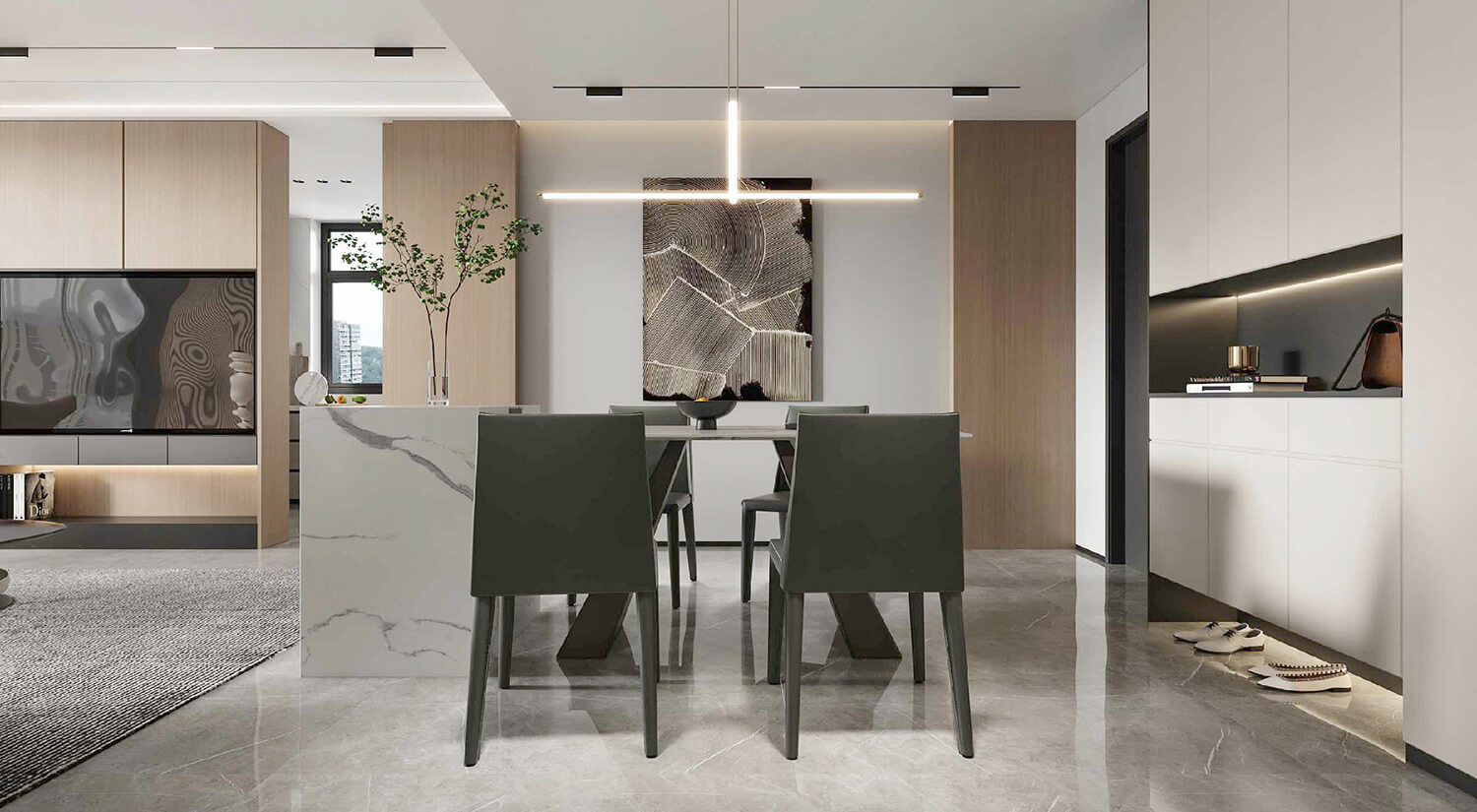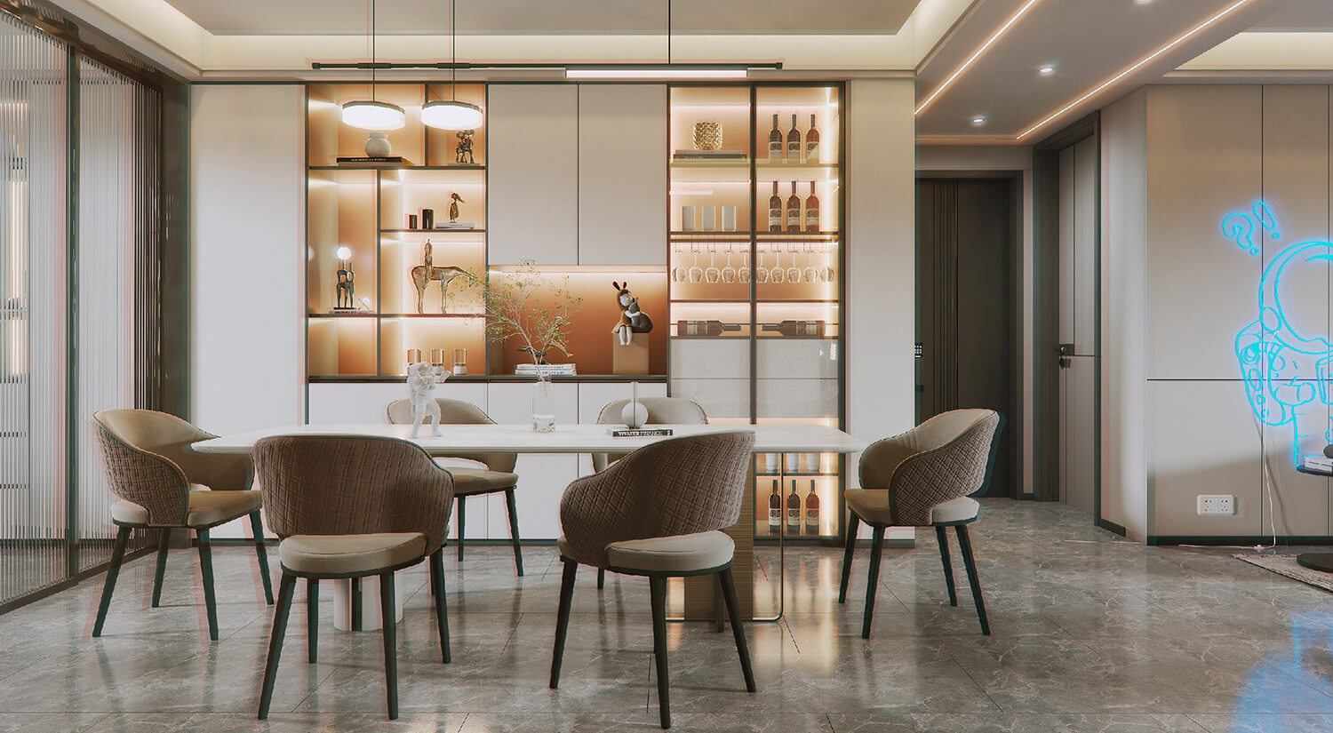 瀏覽量:526在現(xiàn)代輕奢風(fēng)格的裝修中,還需要考慮空間布局和功能性的結(jié)合。一般會(huì)將客廳、餐廳打通,形成開(kāi)放式的空間,增加通透性和流動(dòng)感。暖色線燈烘托家的溫馨氛圍,享受與家人一起用餐的美好時(shí)光。